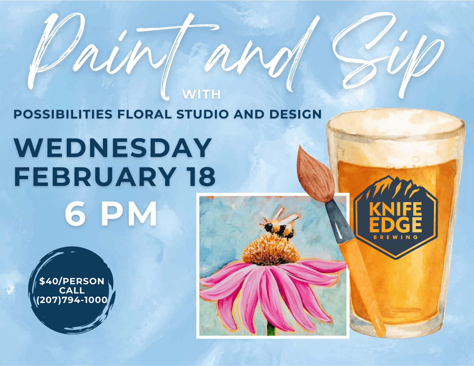 We’re hosting a Paint & Sip with Possibilities Floral Studio and Design on Wednesday, February 18, at 6 pm. Sip on your favorite craft beer while you paint, relax, and unwind with friends.