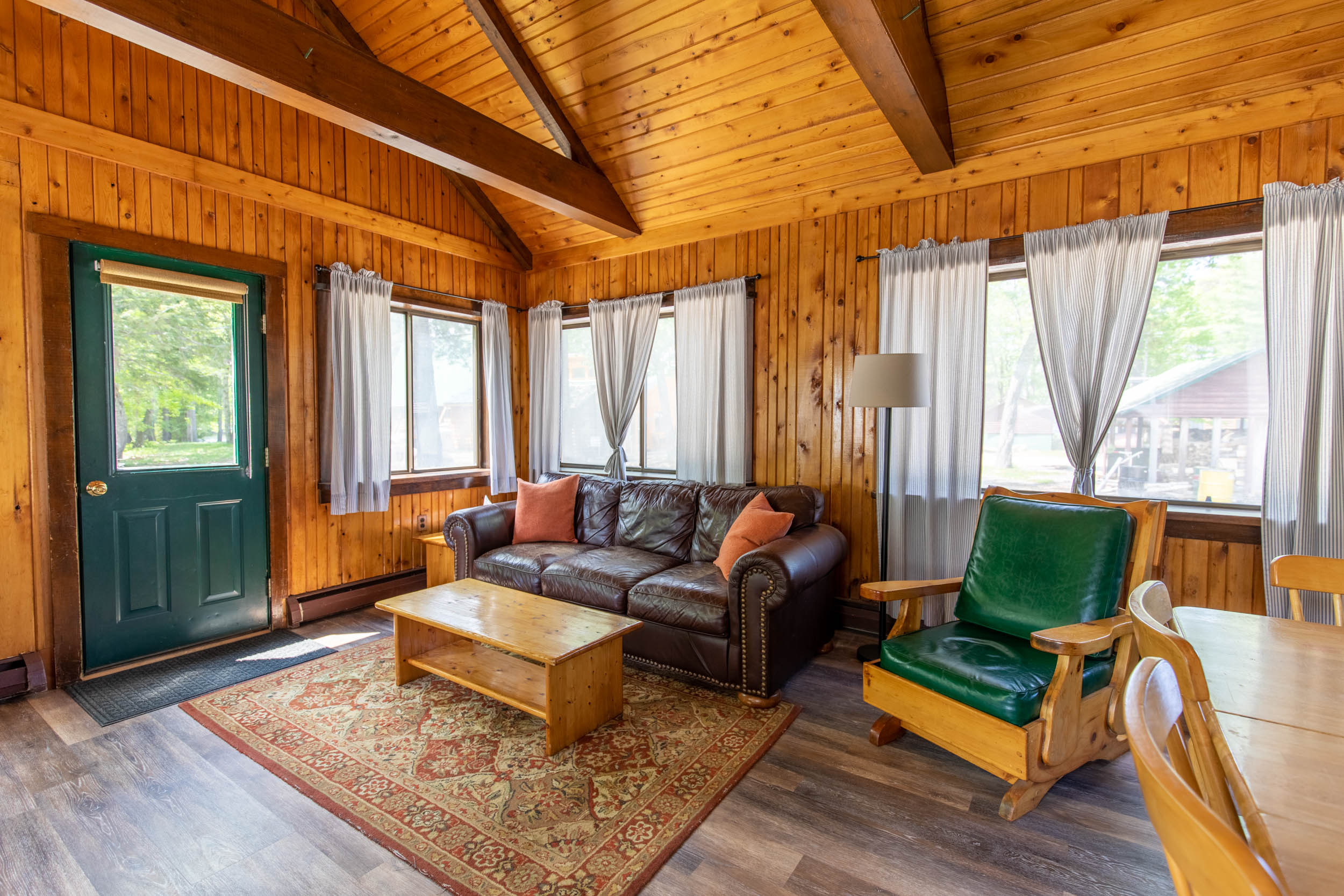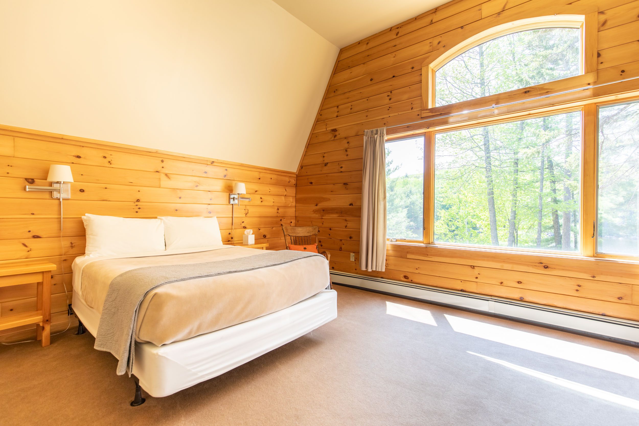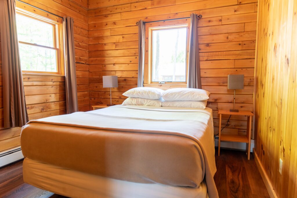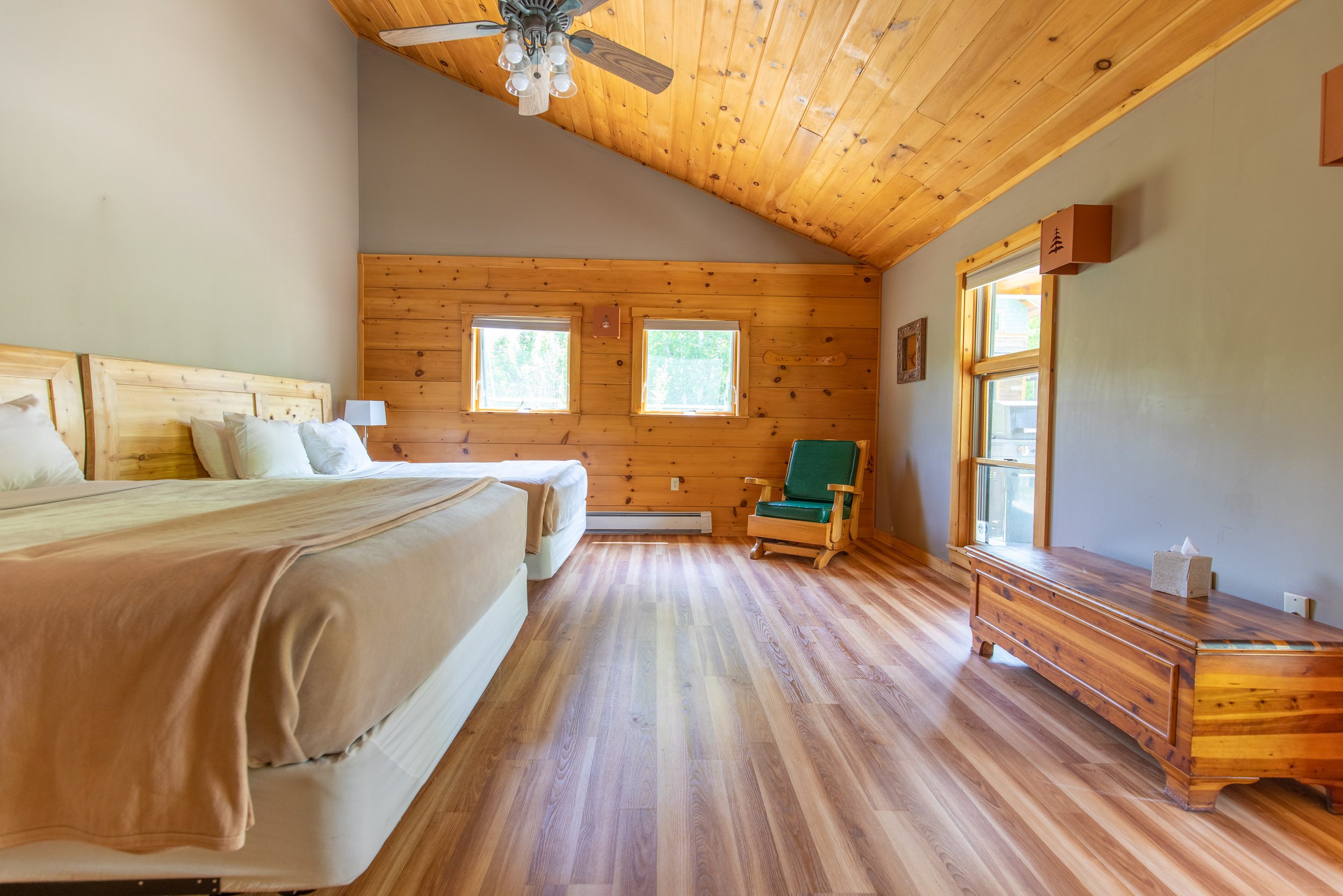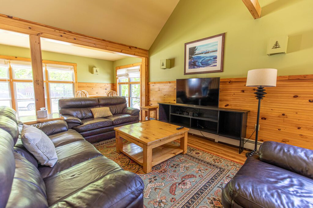 Bears Den offers warm woodwork, roomy private bedrooms, and space for up to 12—just steps from trails, dining, and Katahdin views in the heart of our resort.