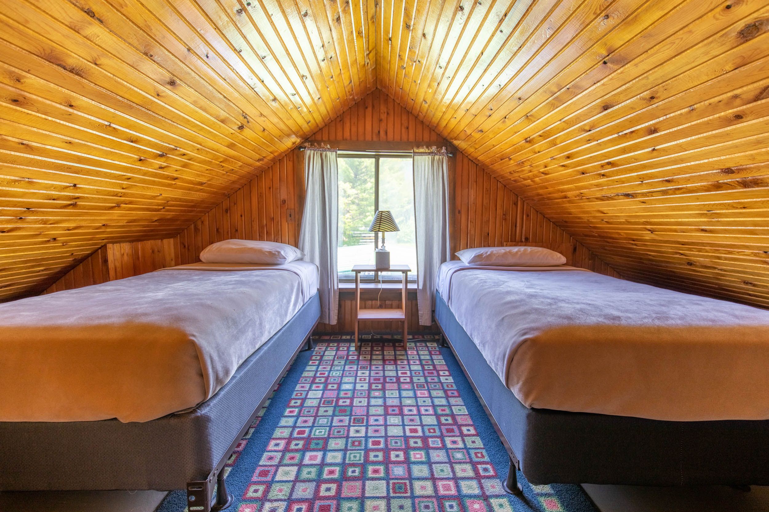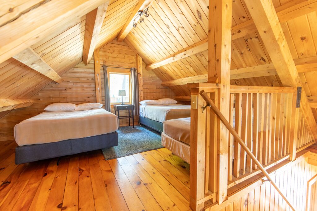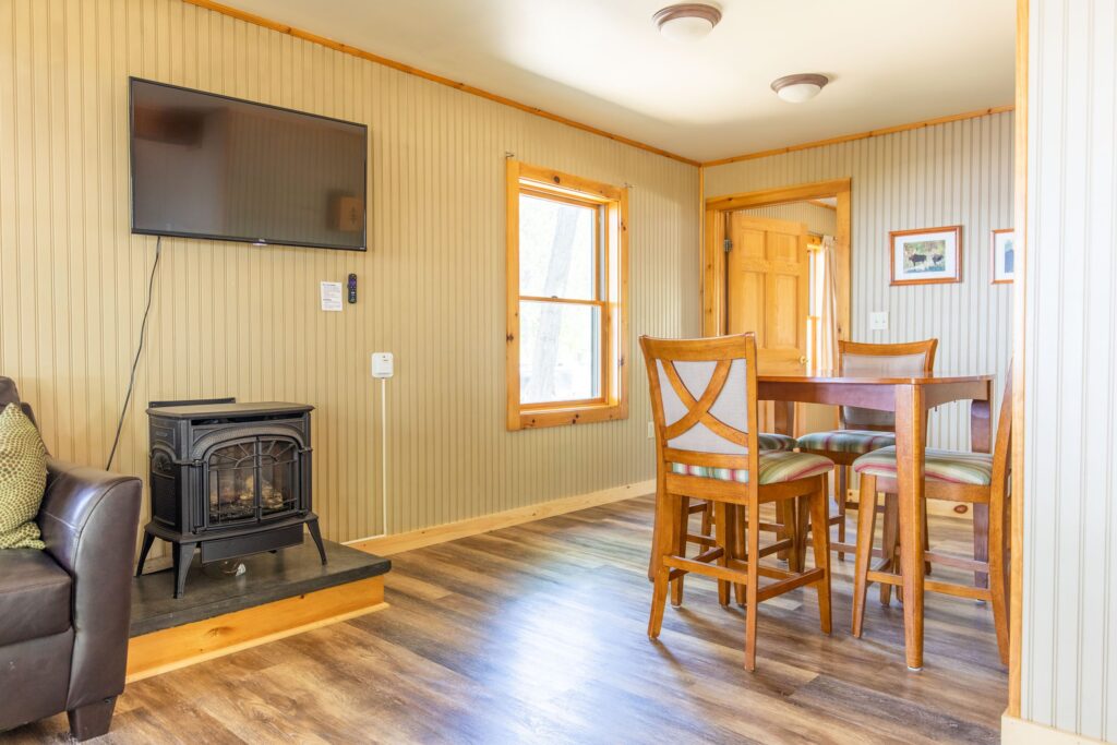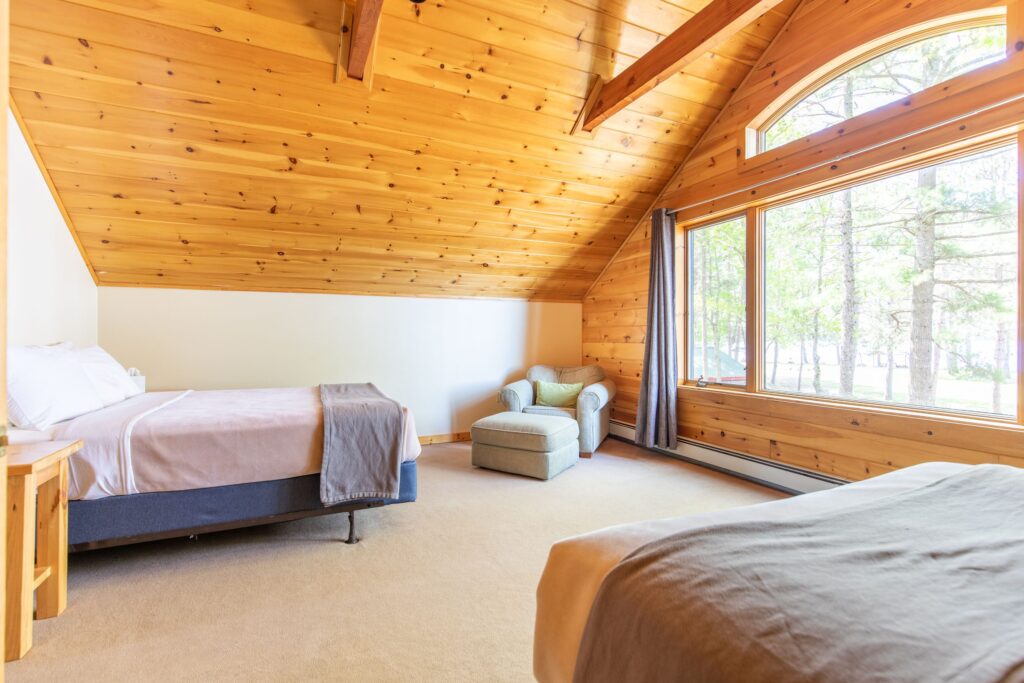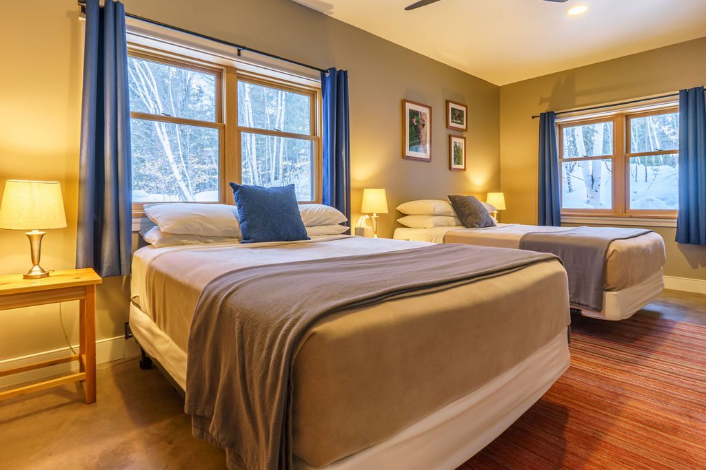 Bears Den offers warm woodwork, roomy private bedrooms, and space for up to 12—just steps from trails, dining, and Katahdin views in the heart of our resort.