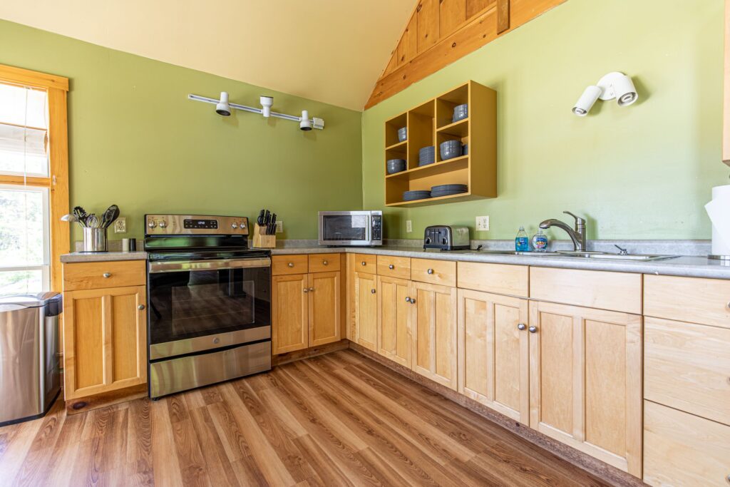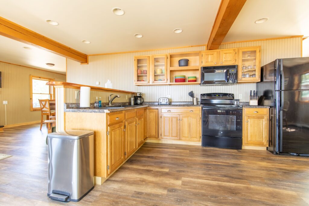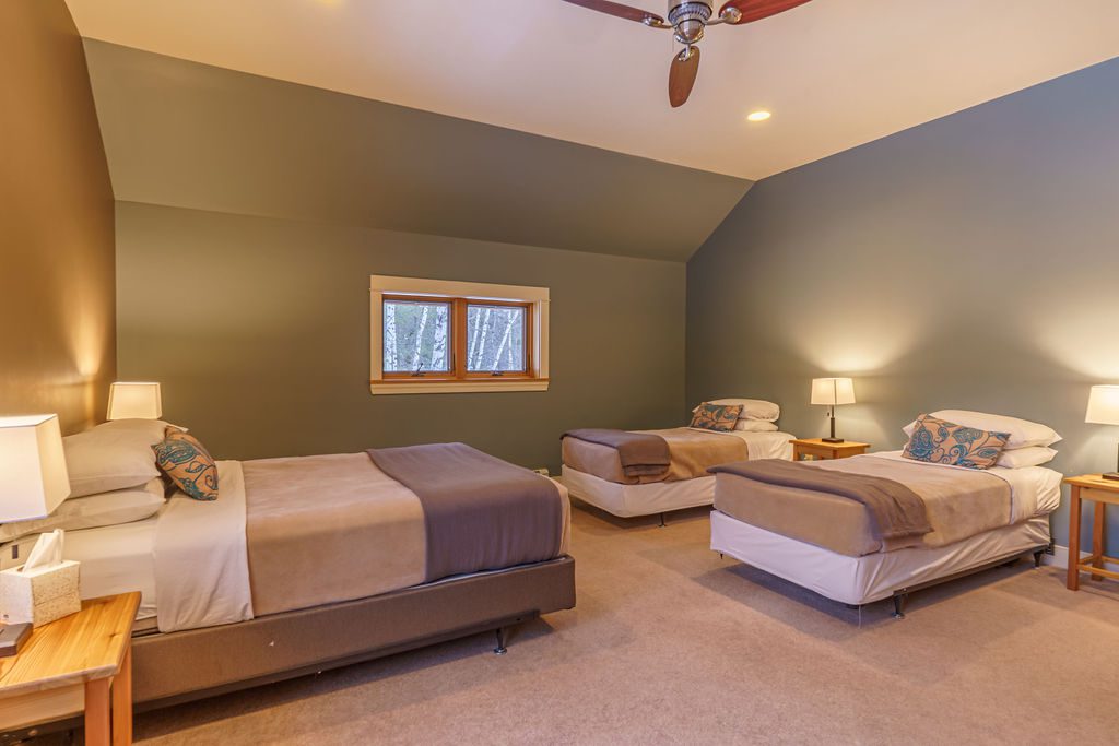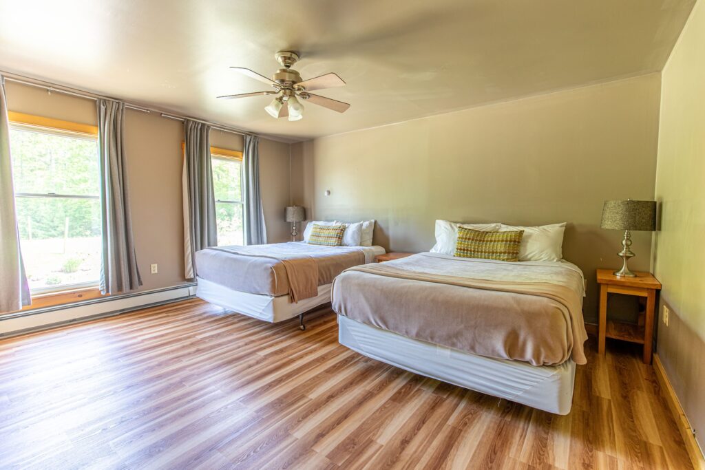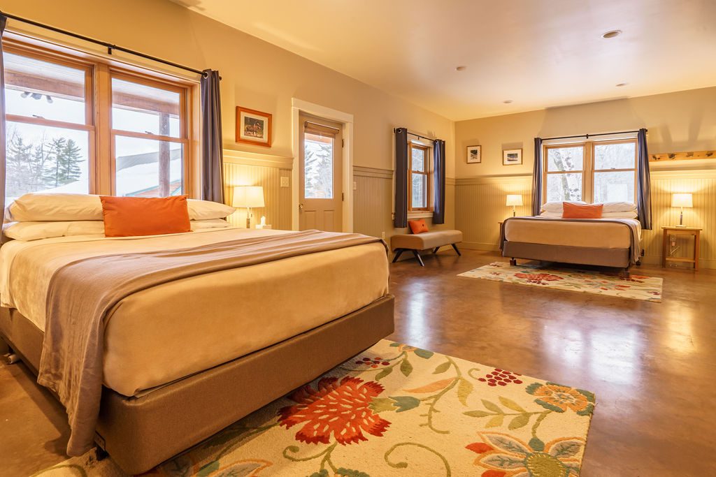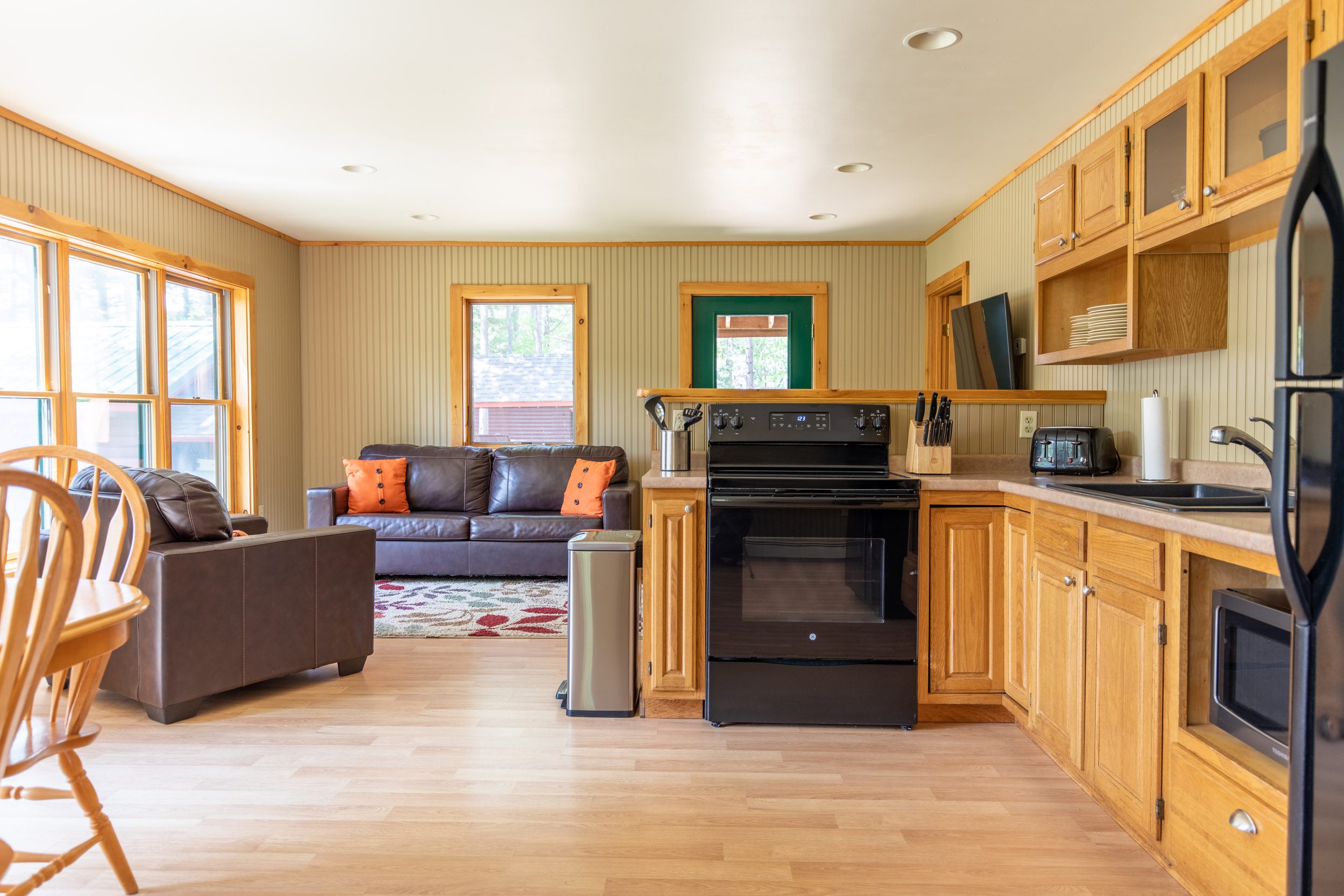 Bears Den offers warm woodwork, roomy private bedrooms, and space for up to 12—just steps from trails, dining, and Katahdin views in the heart of our resort.