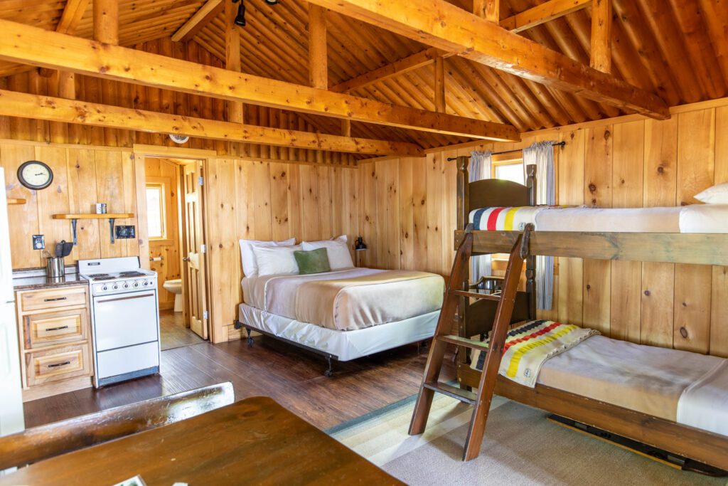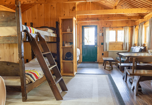 Guide’s Cabin is a rustic, recently refreshed favorite in the heart of the resort, with a unique layout that’s perfect for group stays.