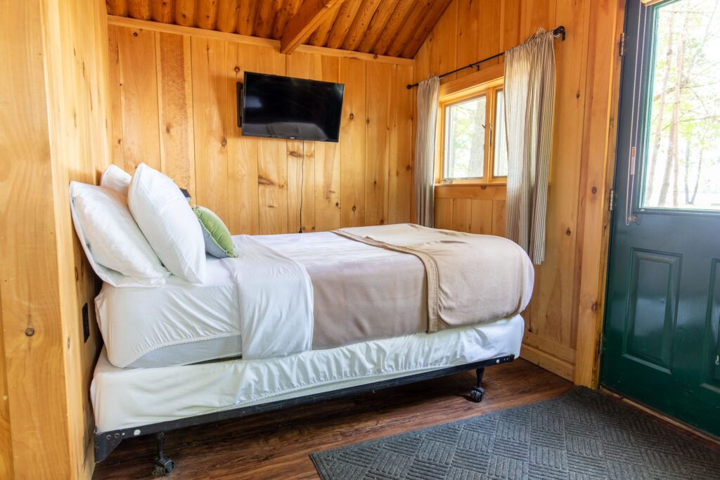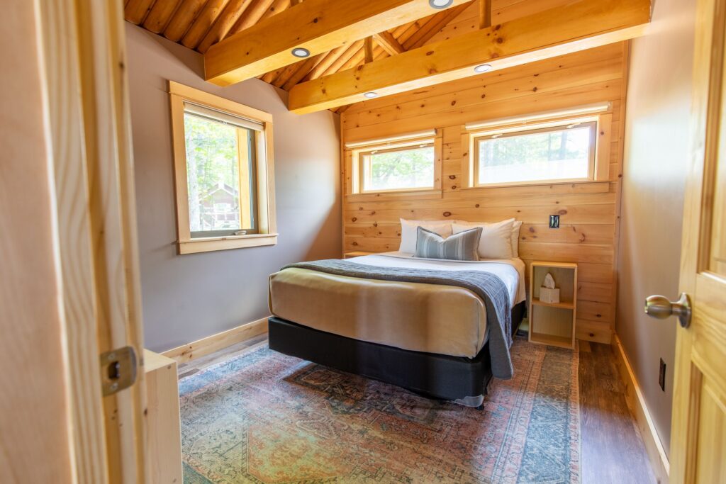 Our most popular premium cabin, Millinocket Stream offers stunning Katahdin views, four private bedrooms, and upscale comfort—just steps from the beach and The Point.