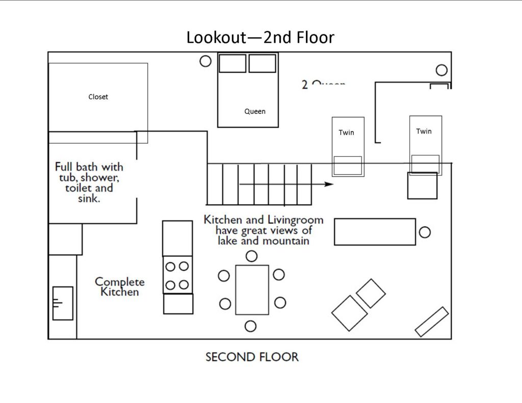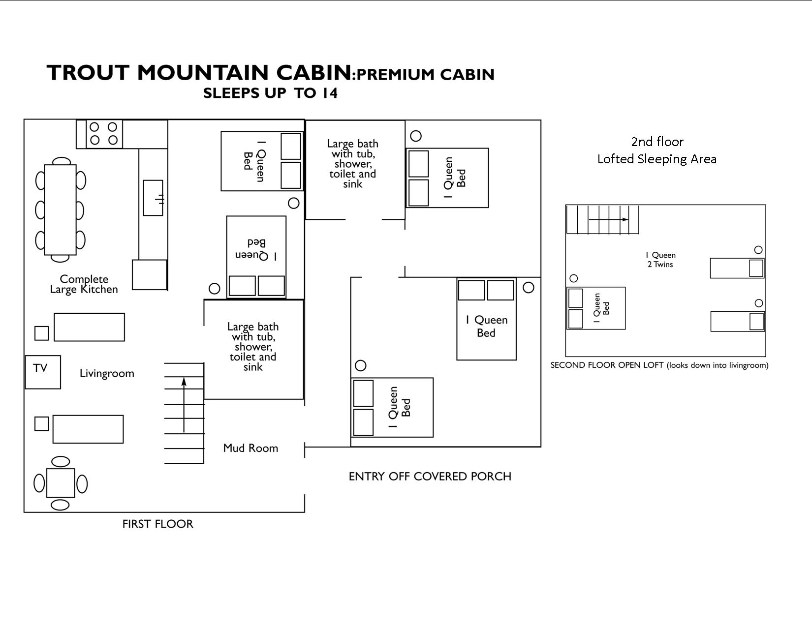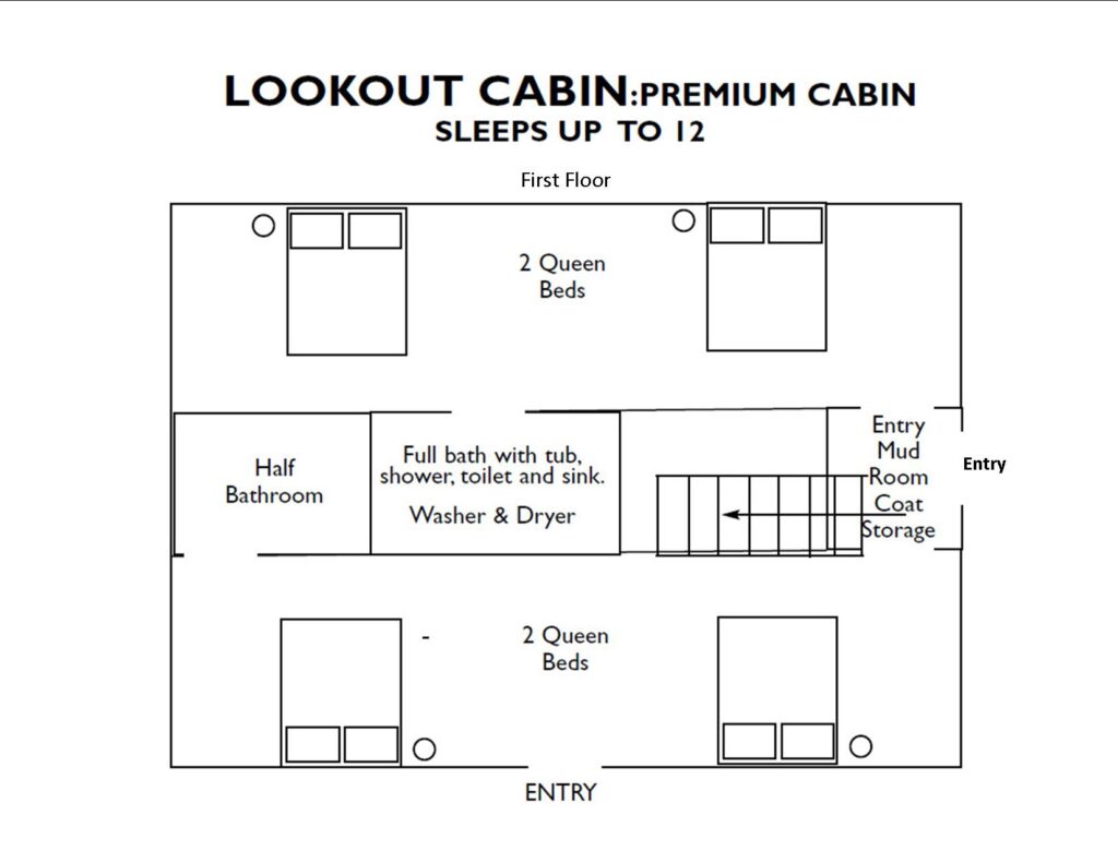 The Lookout Cabin sits in the heart of our resort with sweeping views of the campus, spacious bedrooms, three baths, and a wraparound patio perfect for stargazing after a day of adventure.