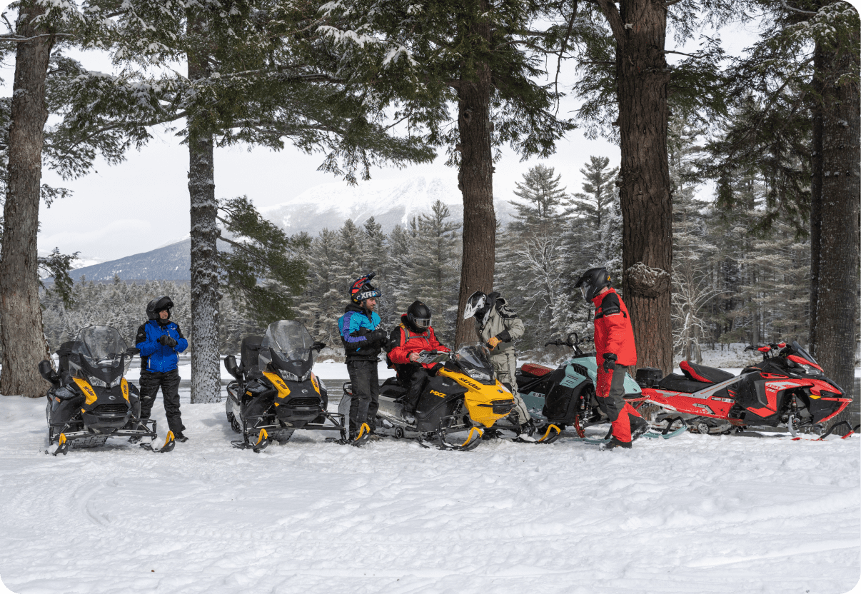 Enthusiasts travel thousands of miles to experience the renowned snowmobile trails found right here in the Katahdin Region. At NEOC, we offer the largest snowmobile rental fleet in the State of Maine—exclusively featuring Ski-Doo snowmobiles, ranging from touring to high-performance. Our fully licensed, insured operation maintains every sled meticulously on-site, and we continually update our fleet with new machines.